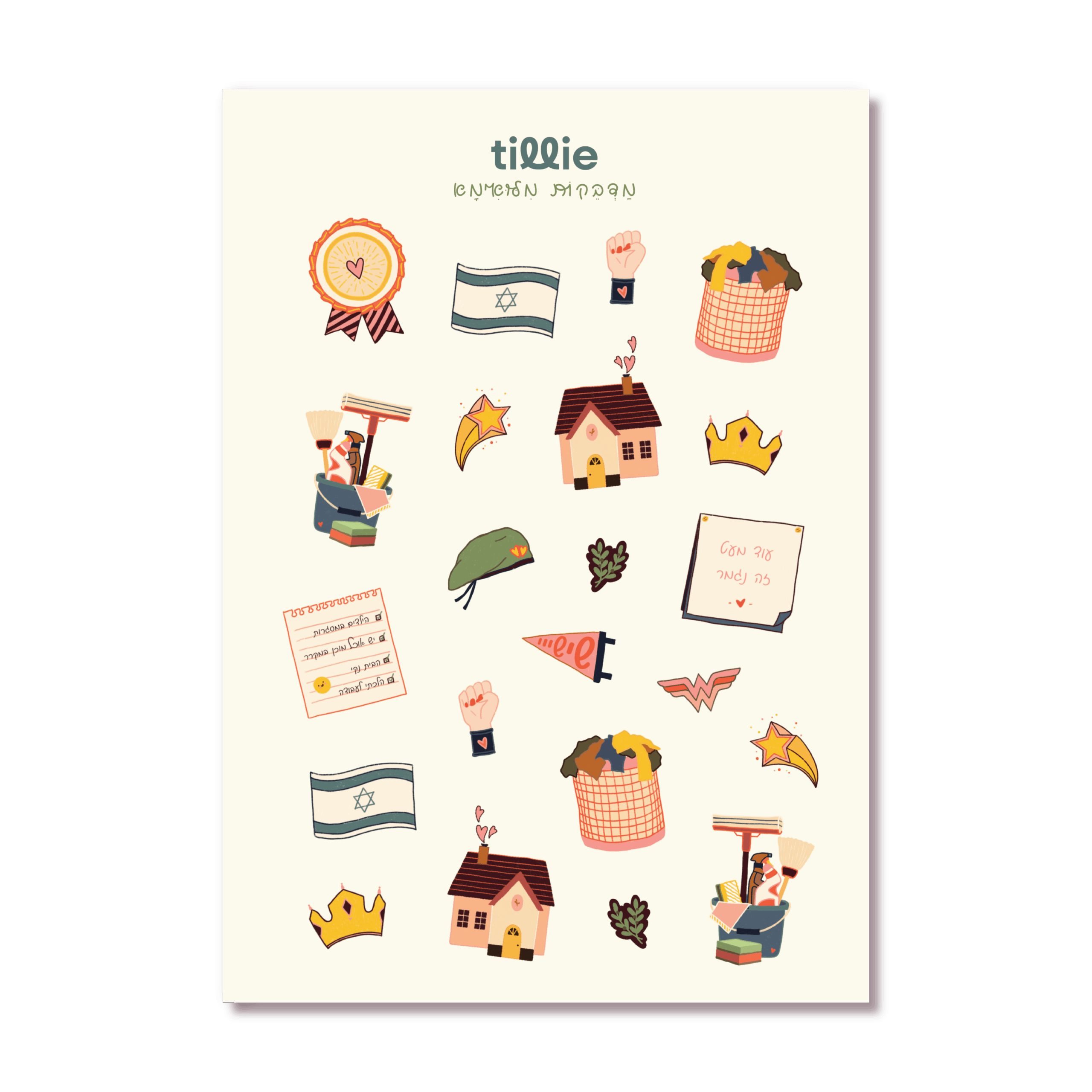 לאלופות שבינינו – דף מדבקות עם איורים מקוריים של שורדת מילואים: הררי כביסה, הציפייה לסופ"ש, צל"ש עצמי ועוד